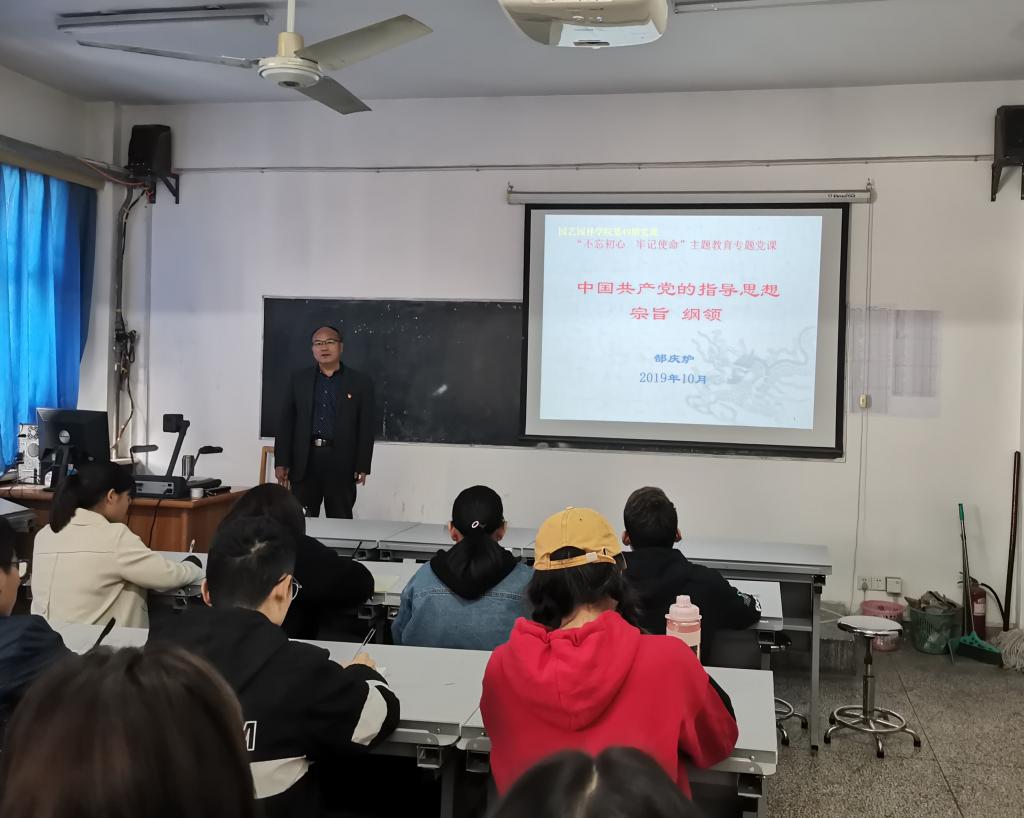 郜庆炉以介绍中国共产党的指导思想为开端,详细地讲解了马克思列宁主义、毛泽东思想、邓小平理论、“三个代表”重要思想和科学发展观的创立过程、主要内容、历史地位和指导意义,重点介绍了习近平新时代中国特色社会主义思想。随后,他就中国共产党在各个发展阶段矛盾的变化分析不同时期党的发展路线,讲解了党的指导思想、党的基本路线、党的宗旨、党的纲领等基本概念,强调了党的最终奋斗目标是实现共产主义。同时郜庆炉指出党的宗旨是“全心全意为人民服务”,要端正入党动机,做好模范引领作用,心怀服务意识、大局意识,不忘入党初心,牢记时代使命,把学生的利益放在首位,关注同学、关心同学、关爱同学,帮助身边的同学们成长成才。