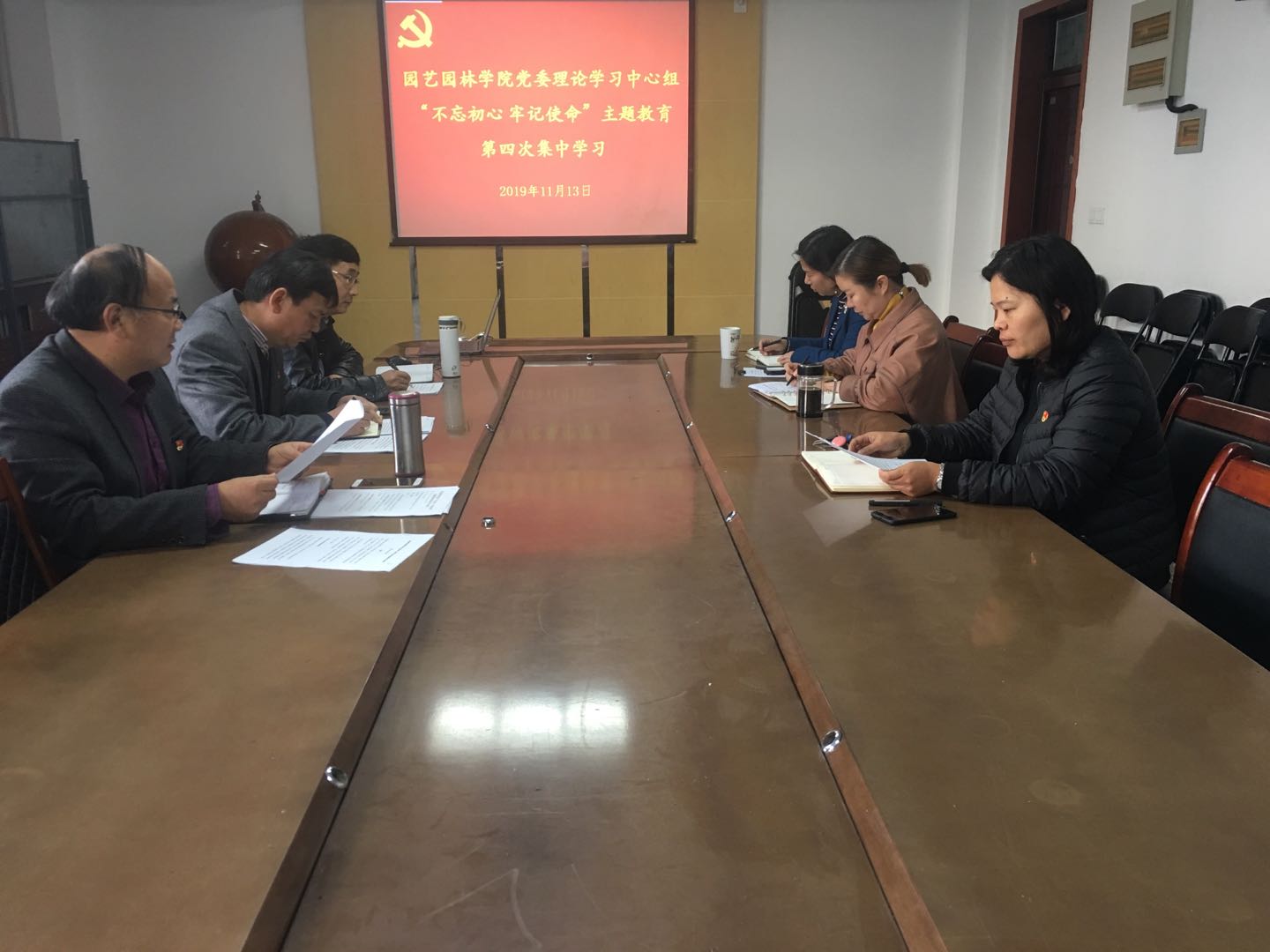 11月13日上午,园艺园林学院党委理论学习中心组于实验楼B316会议室举行“不忘初心、牢记使命”主题教育第四次集中学习。学院党政领导、党委委员参加了此次会议。会议由党委书记郜庆炉主持。