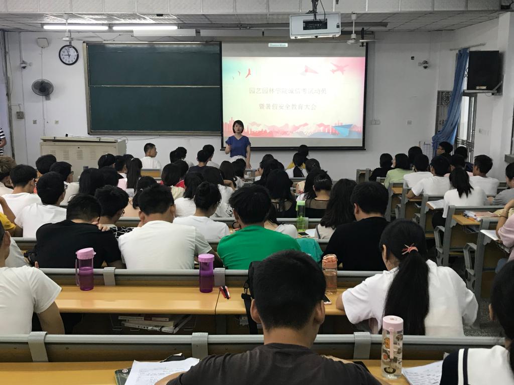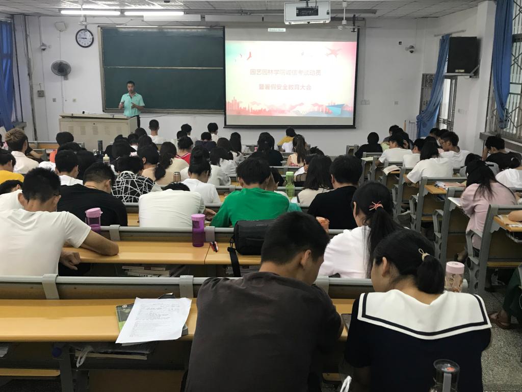 为加强学风建设,严肃考风考纪,培养大学生诚实守信精神,6月24日-28日,园艺园林学院学院于实验楼一合一、一合三分年级召开了诚信考试动员暨暑期安全教育大会,学院全体辅导员、学生干部以及各年级学生参加了此次会议。