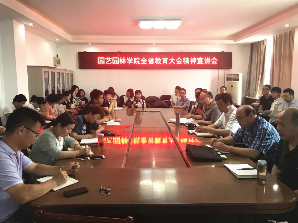 6月6日下午,园艺园林学院于实验楼B316会议室召开全省教育大会精神宣讲会,党委书记郜庆炉作全省教育大会精神宣讲报告。学院党政领导以及全体教师参加会议。