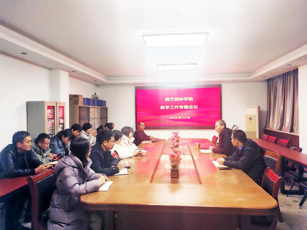 12月23日下午,园艺园林学院在实验楼B段316会议室召开2024年本科教学工作专题会议。学院党委书记郭超杰、教学副院长贾文庆以及各专业负责人、教研室主任参加了会议。会议由学院教学副院长贾文庆主持。
