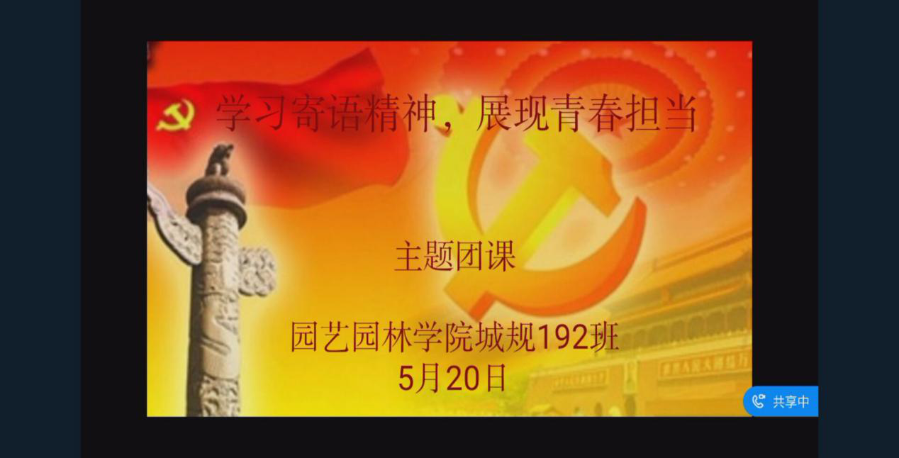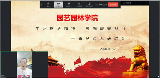 5月18日-20日,园艺园林学院组织各团支部于线上召开了“学习寄语精神, 展现青春担当”主题“云”团课。本次团课由青马沙龙学员骨干结合青马沙龙研讨会结果面向各团支部进行宣讲,各团支部积极组织学习,并交流学习感悟。