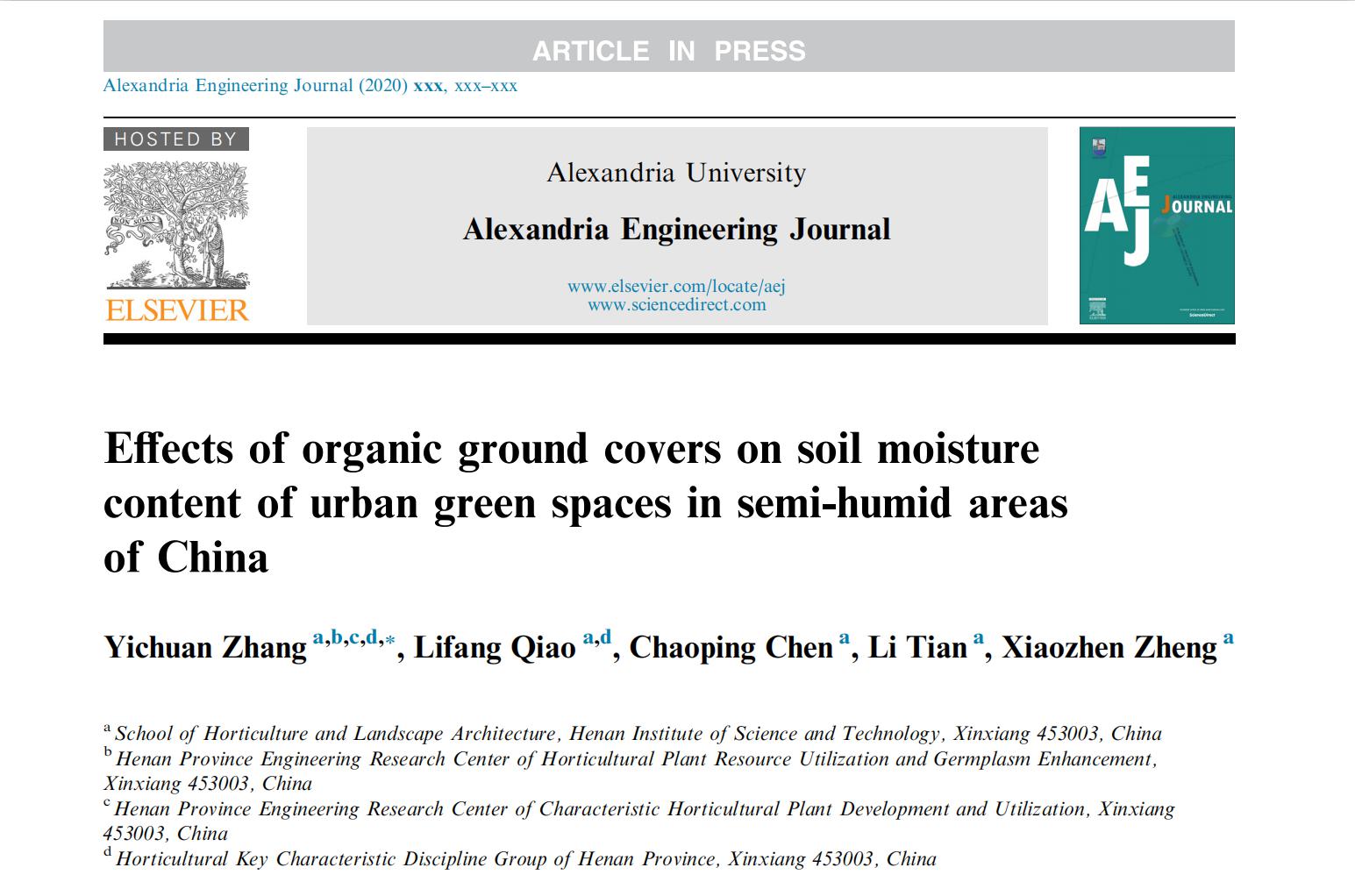 2020年8月15号,Elsevier出版集团旗下著名工程期刊Alexandria Engineering Journal(Impact Factor:2.46)在线发表了园艺园林学院张毅川博士城市雨水资源利用课题组的研究论文“Effects of organic ground covers on soil moisture content of urban green spaces in semi-humid areas of China”。论文链接如下:https://www.sciencedirect.com/science/article/pii/S1110016820303781