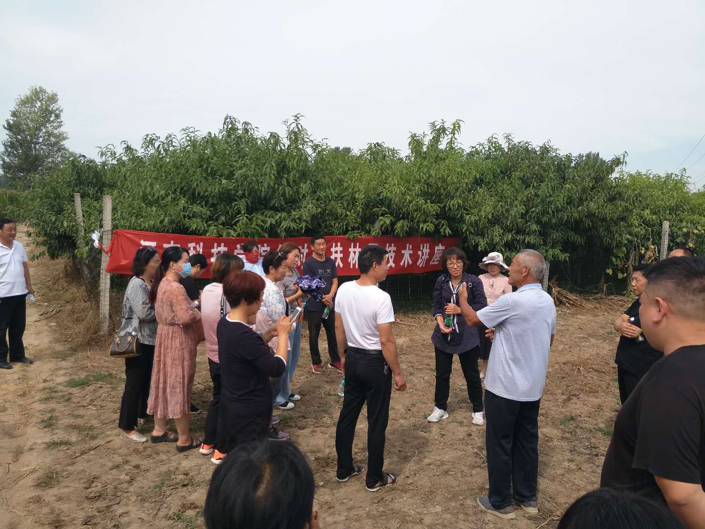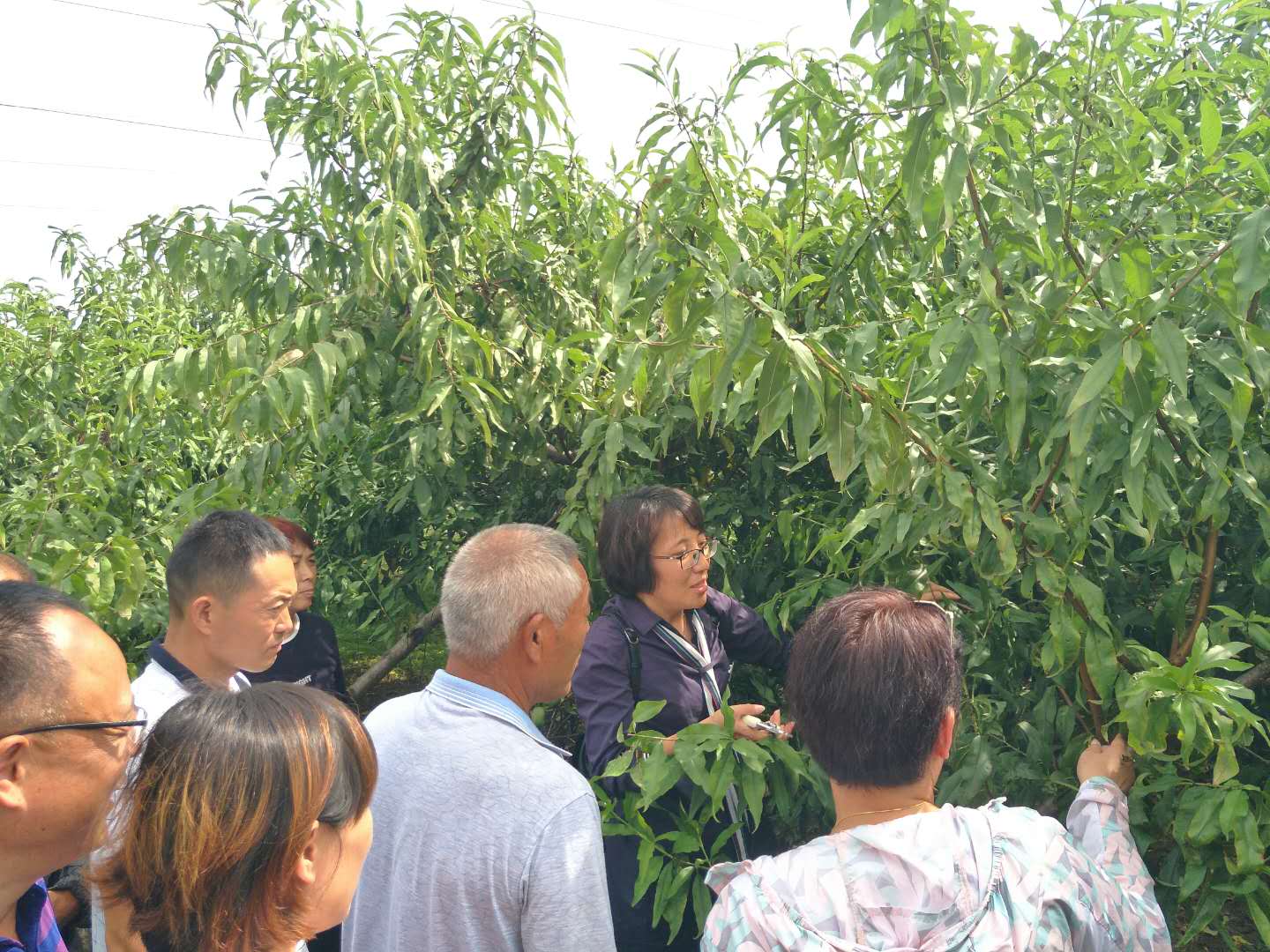 在平店乡曾庄村,周瑞金开展了桃树秋季管理技术专题培训,并就果农存在的果园郁闭、裂果和落果严重、病虫害防控难等问题进行了答疑讲解。之后,针对桃树秋季修剪关键技术对接受培训的果农进行了现场示范操作。