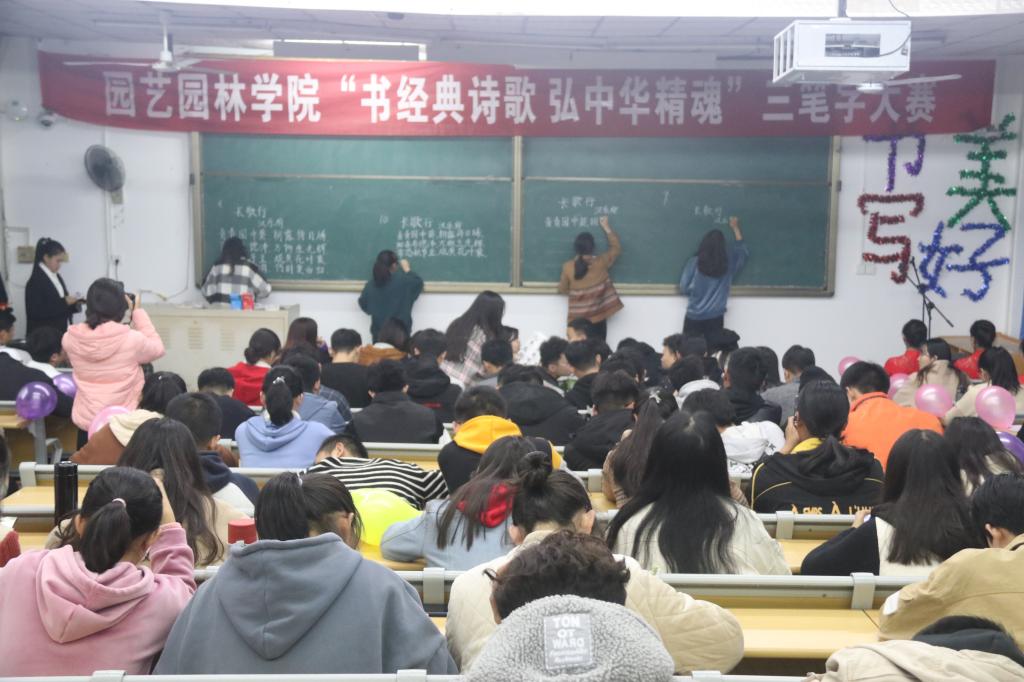 为弘扬书法精神,发挥校园文化育人功能,提高学生的道德修养、文明素质和专业技能,促进学校良好学风的形成。11月17日,园艺园林学院在一合二教室举办以“书经典诗歌,弘中华精魄”为主题的三笔字大赛。本次大赛由学生代表担任评委,五十余人参加比赛。