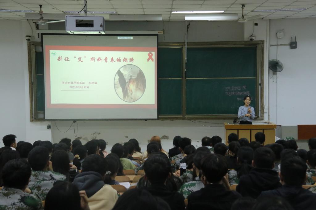 会议伊始,李艳丽医生首先通过调查问卷的形式,引导同学们初步了解了传染病的传播途径。随后,以艾滋病为典型,李医生向同学们讲解了艾滋病等相关传染病的流行特点及预防策略,并呼吁大家关爱艾滋病人,正确看待艾滋病患者,珍惜、关爱自己和他人的生命健康,养好良好的健康习惯。最后,李医生向大家耐心普及医保知识,再次叮嘱同学们要在这个特殊时期注意预防传染病,在生活中多加锻炼,保护好自己的身体健康。