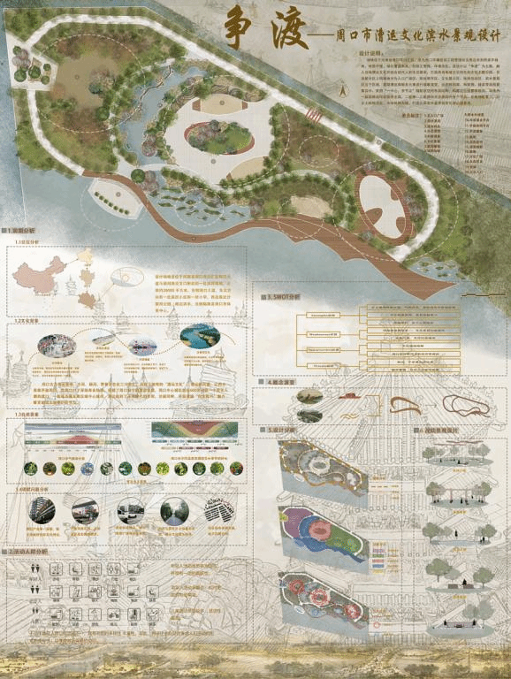 12月25日,河南省教育厅公布了2023“创响中原”河南省大学生艺术设计大赛竞赛结果。其中园艺园林学院风景园林本科学生李攀茹团队的作品(指导教师:张毅川)。“争渡——周口市漕运文化滨水景观设计”获三等奖1项。