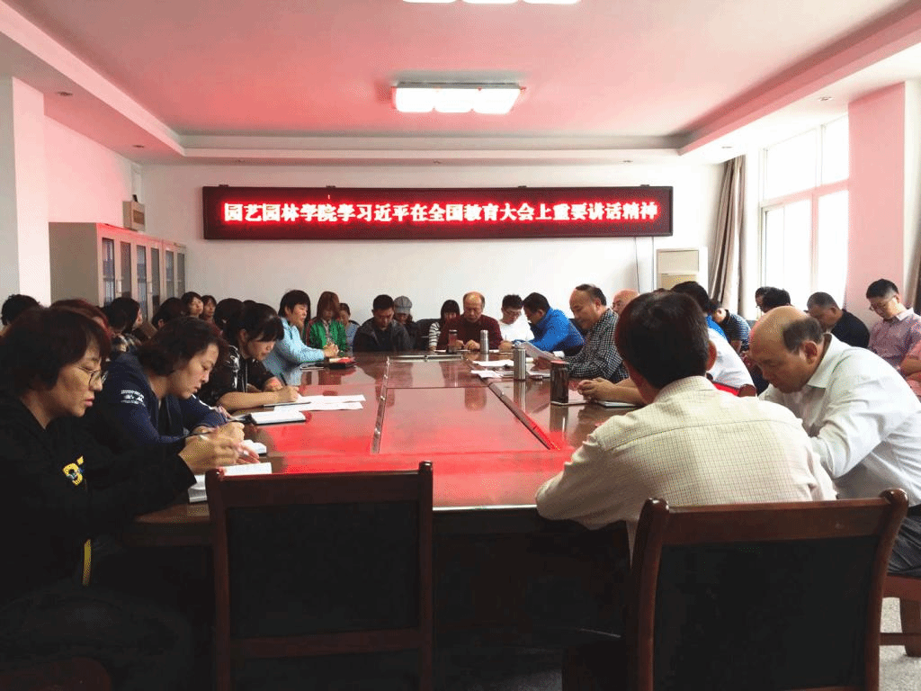 9月20日下午,园艺园林学院在实验楼B312会议室组织全体教职工学习习近平总书记在全国教育大会上的重要讲话精神,会议由院党委书记郜庆炉主持。