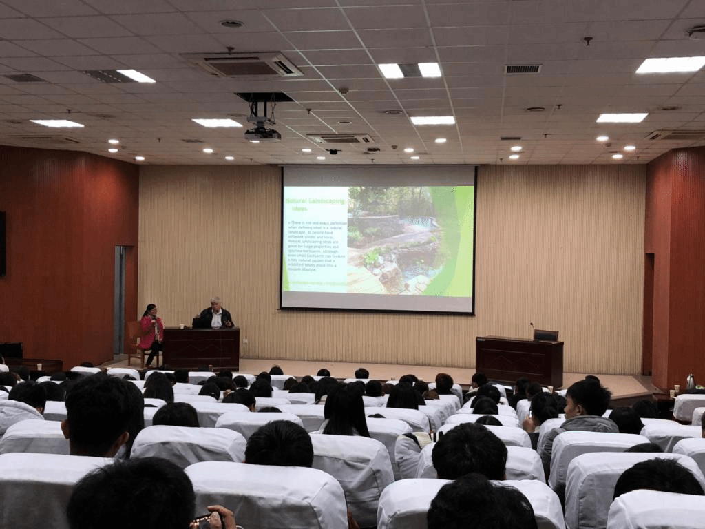 Stephen Shermack先生的报告主要介绍了Benefits of Landscaping、Natural Landscapes、Hardscapes、Edible Landscapes和Residential Landscapes等相关内容,对北美多类绿地的景观设计思想进行了讲解。最后,与会师生就中加两国园林景观的异同、海绵城市建设等问题与Stephen Shermack先生进行了互动交流。该报告拓宽了师生的景观视野,使师生对北美的景观设计思想有了更加深入的了解。