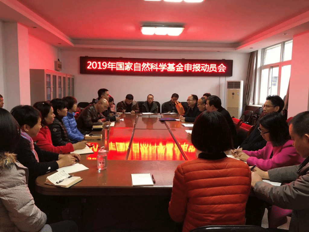 刘润强传达了学校的申报精神,鼓励符合条件的教师都要积极申报。张毅川基金申报做了具体工作部署,从全员高度重视、保证数量、提升质量等方面对基金申报工作提出了要求,并结合学校2019年国家自然科学基金申报工作方案,对关键时间点、三轮论证环节进行了说明。最后,要求符合条件的教师要积极申报并认真撰写申请书。