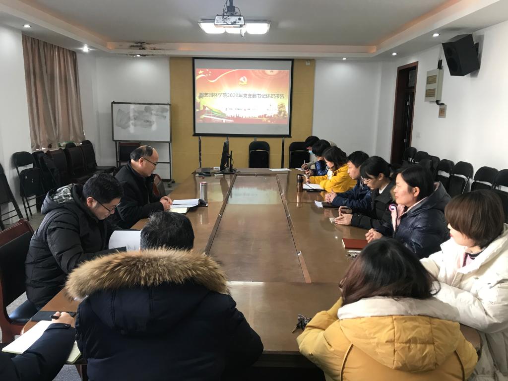 1月7日下午,园艺园林学院党委在实验楼B段316会议室组织召开了2020年度党支部书记述职评议会议。学院党委委员、各支部书记以及党员代表参加会议。会议由学院党委书记郜庆炉主持。