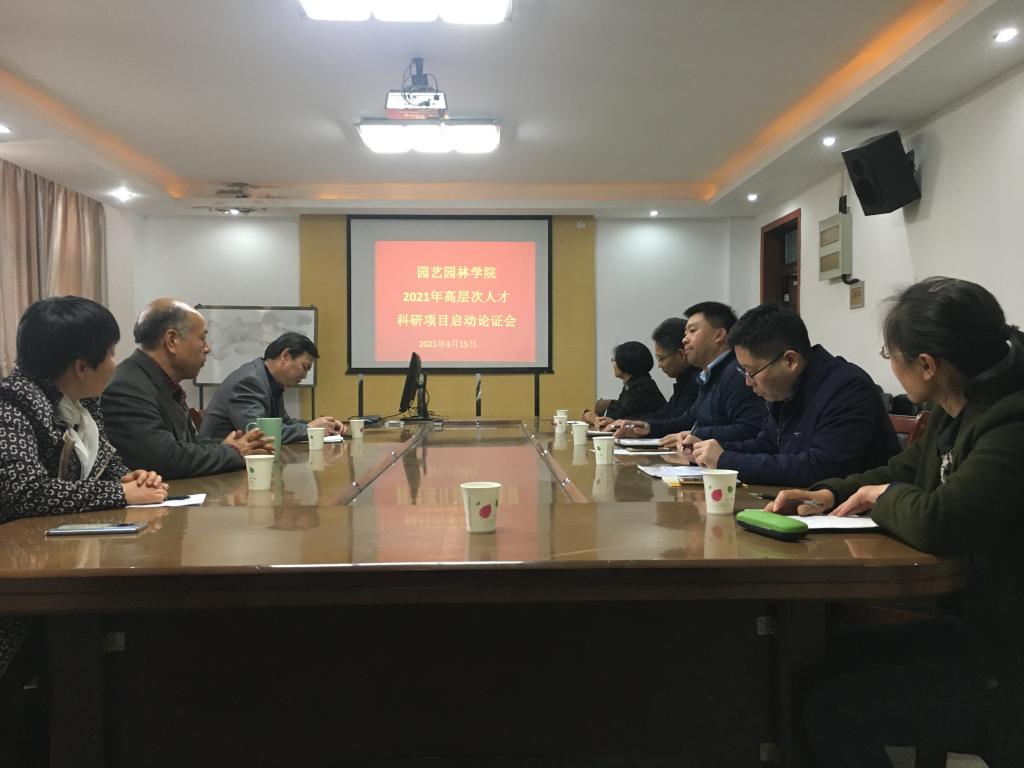 3月15日下午,园艺园林学院在B316会议室召开了2021年高层次人才科研项目启动论证会。学院相关学科带头人参加了会议。会议由学院院长周俊国主持。
