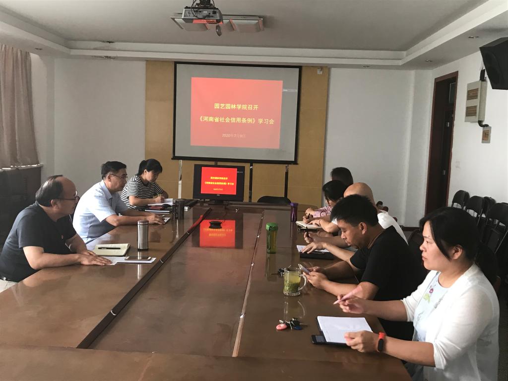 为推进社会信用建设,进一步加强宣传《河南省社会信用条例》工作,积极弘扬社会主义诚信价值观,营造学条例、用条例、守条例的浓厚氛围。根据学校宣传部的要求,园艺园林学院于7月9日,召开了《河南省社会信用条例》学习宣讲会,并通过腾讯视频会议组织全体教师参加学习。