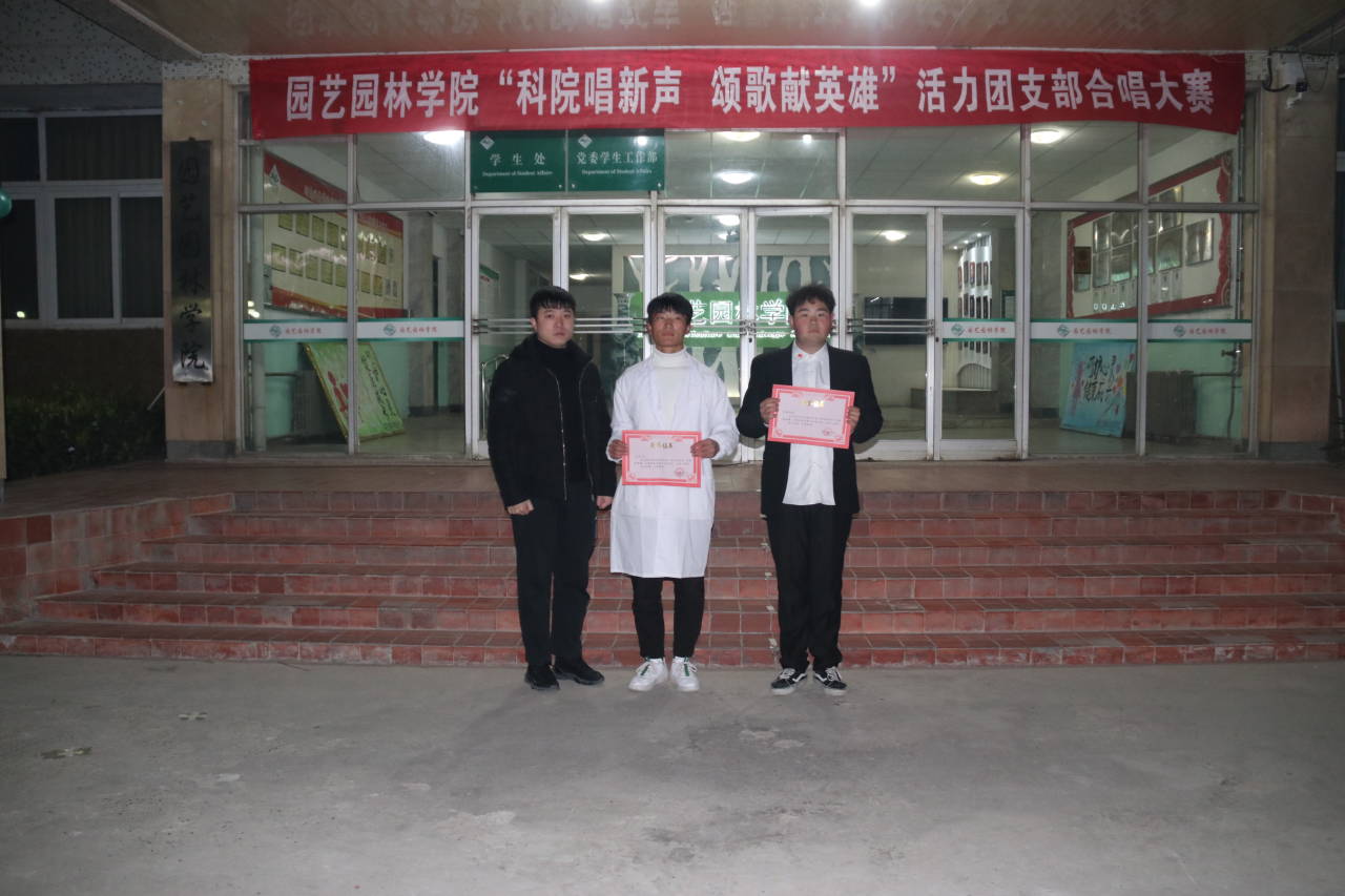 比赛开始,13个团支部按照顺序依次上场。比赛台上,同学们热情洋溢,声音洪亮,指挥员手势准确,富有激情,《托起明天的太阳》、《歌唱祖国》、《黄河大合唱》、《逆行》等曲目唱出了同学们心中保家卫国的理想壮志,以及对英雄的致敬和感恩。比赛台下,观众喝彩练练,在一阵阵掌声中将比赛推向高潮。经过一番紧张激烈的角逐,最终园艺202、种植卓越201团支部夺得比赛的一等奖。大赛最后,辅导员余根对此次合唱比赛作出精彩的点评并颁发班级荣誉奖状。
