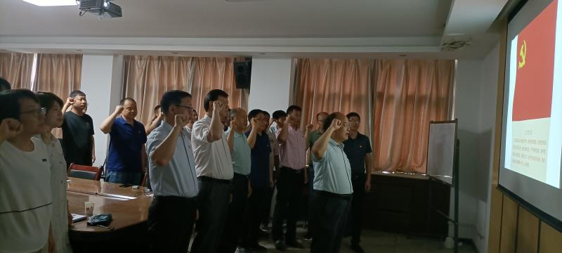 最后,郜庆炉带领全体党员重温入党誓词。全体党员面向党旗,举起右手,庄严宣誓,铮铮誓言表达了对党忠诚、为共产主义事业奋斗终身的决心。