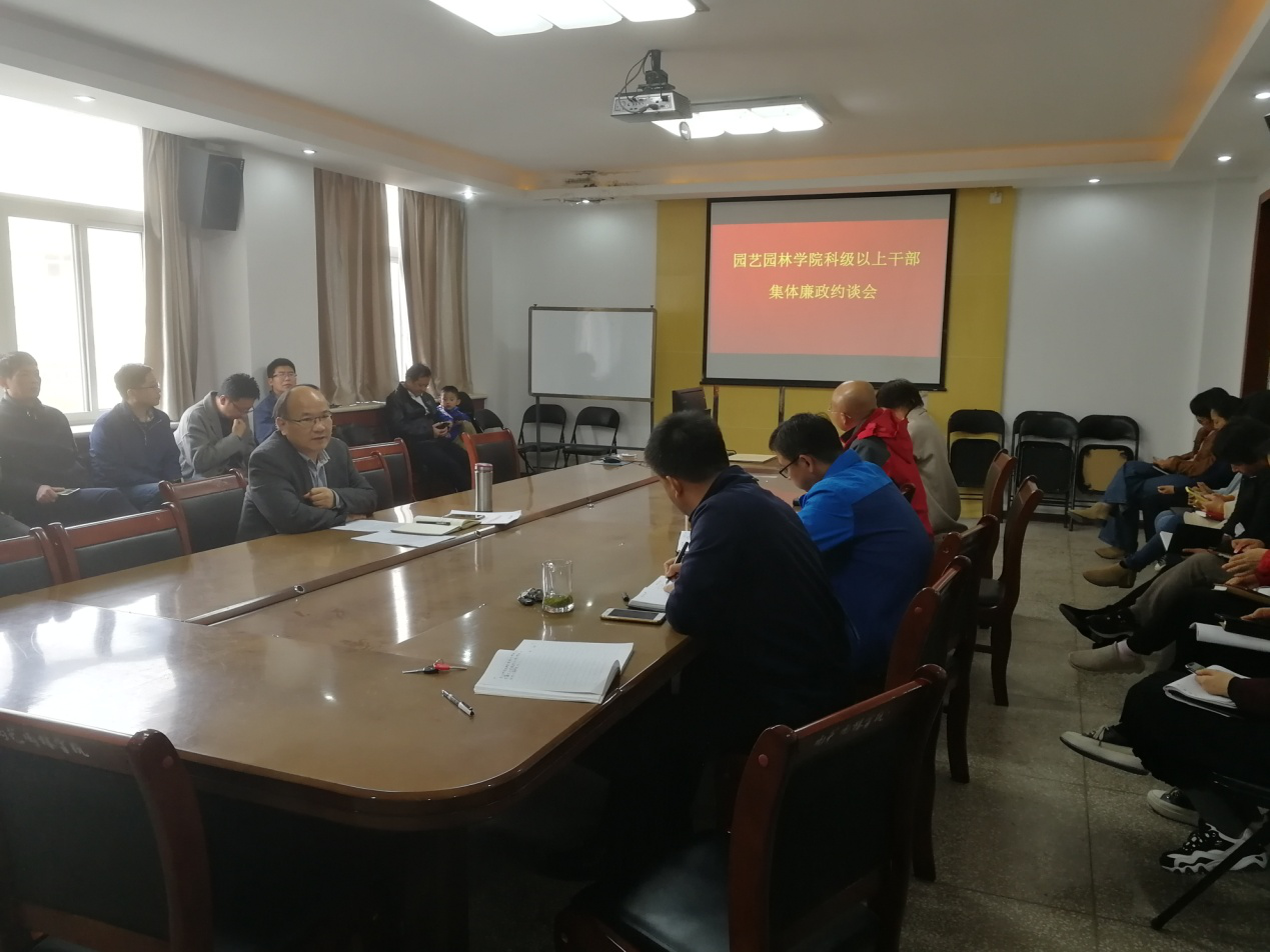 10月29日,园艺园林学院党委于实验楼B316会议室召开科级以上干部集体廉政约谈会,学院党政领导以及科级以上人员参加会议。会议由党委书记郜庆炉主持。