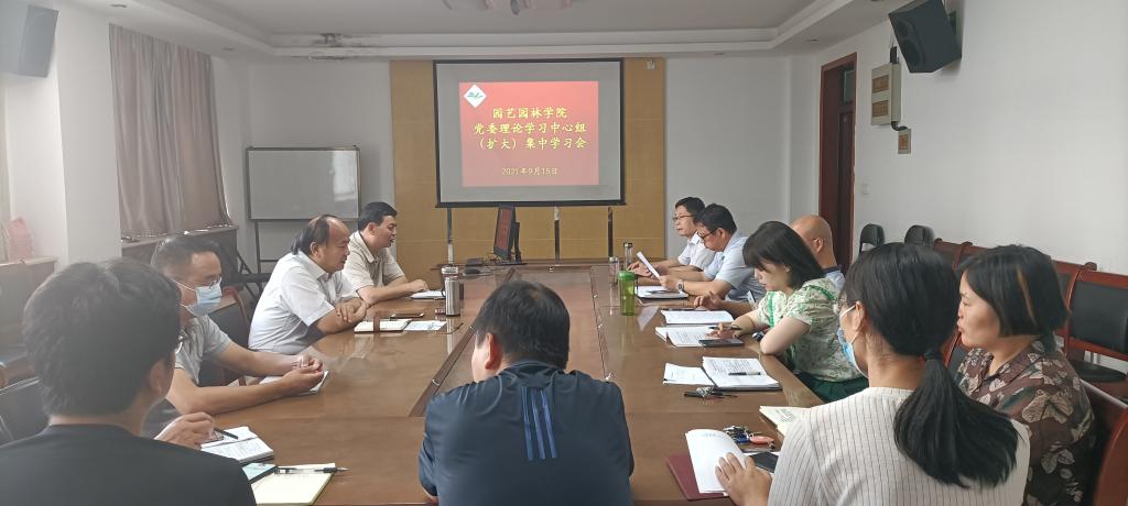 9月15日下午,园艺园林学院在实验楼B316会议室召开党委理论学习中心组(扩大)集中学习会。学院领导班子和支部书记参加了会议。会议由党委书记郜庆炉主持。