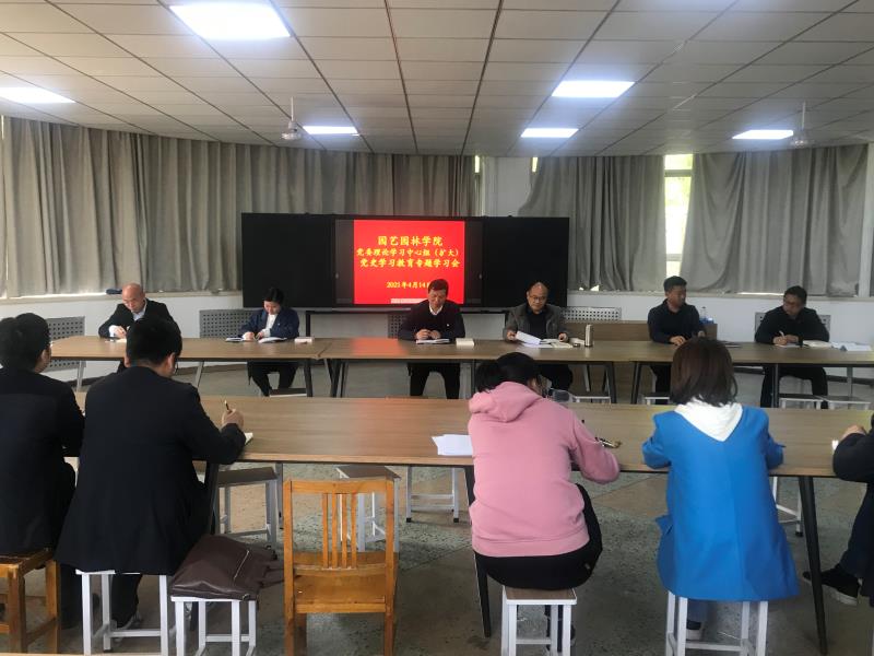 4月14日下午,园艺园林学院在实验楼A段一楼会议室召开党委理论学习中心组(扩大)党史学习教育专题学习会。会议由党委书记郜庆炉主持,党委委员、支部书记和支部委员参加。