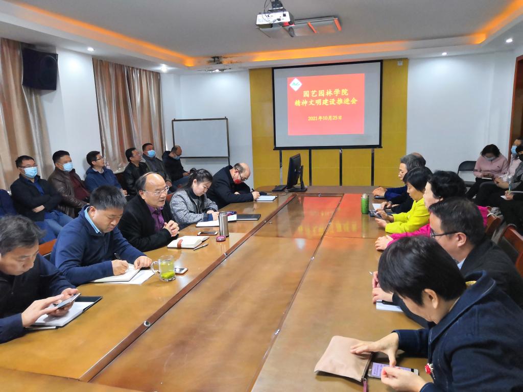 10月25日下午,园艺园林学院在实验楼B316会议室召开了精神文明建设推进会,全体教职工参加了会议。会议由党委书记郜庆炉主持。