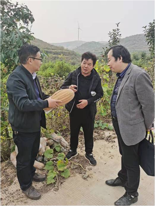 在劳模创新工作室,张瑞认真听取了李新峥教授的科研工作汇报,查看了研究团队近年取得的成果证书和获得的荣誉,后又到鹤壁市淇县南瓜新品种生产示范基地进行实地考察。张瑞表示,依托省重大科技专项支持,南瓜研究团队在南瓜种质资源收集和创新、新品种选育、生产示范推广等方面取得了较大的研究成果,并表示杂志社将持续关注我校的南瓜研究进展,加强对南瓜研究成果的宣传。