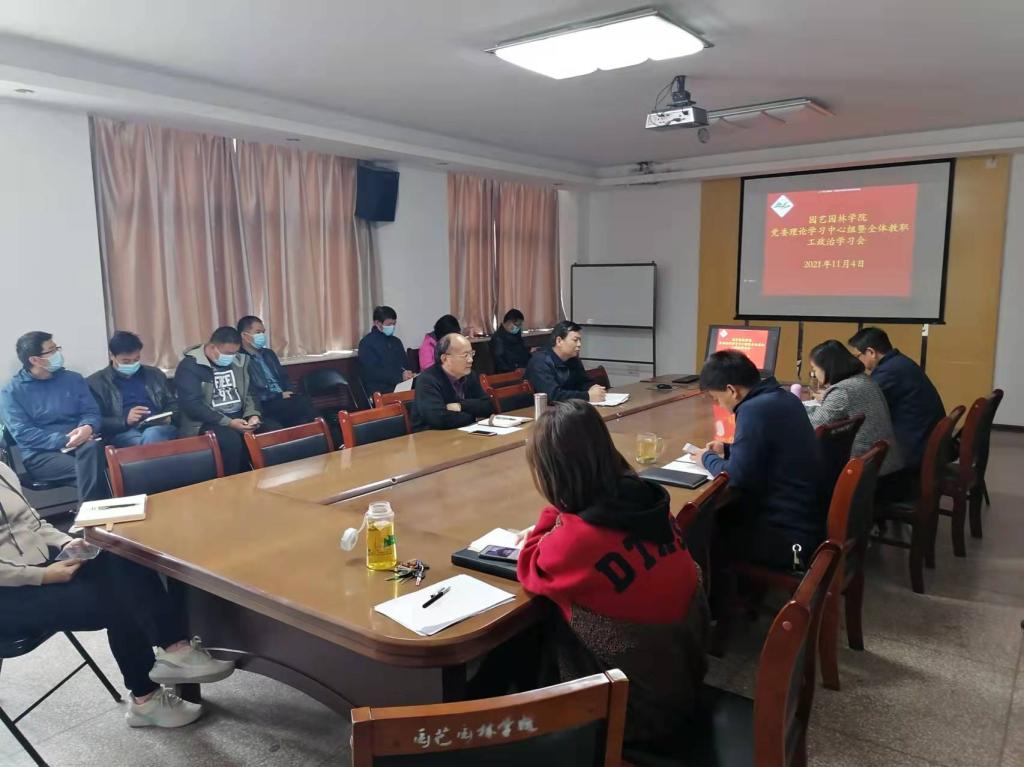 11月4日下午,园艺园林学院在B316会议室召开党委理论学习中心组暨教职工政治理论学习会,集中学习了中国共产党河南省第十一次代表大会精神。会议采用线上+线下形式,学院党政领导班子及两办人员现场参加会议,其他老师线上参加会议。会议由党委书记郜庆炉主持。