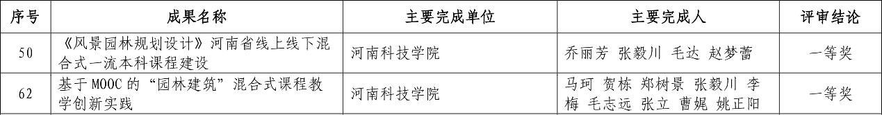 8月17日,河南省教育厅公示了2020年度河南省教育信息化优秀成果奖获奖名单,园艺园林学院教师乔丽芳主持的“《风景园林规划设计》河南省线上线下混合式一流本科课程建设”和马珂主持的“基于MOOC的园林建筑混合式课程教学创新实践”获得创新应用类一等奖。