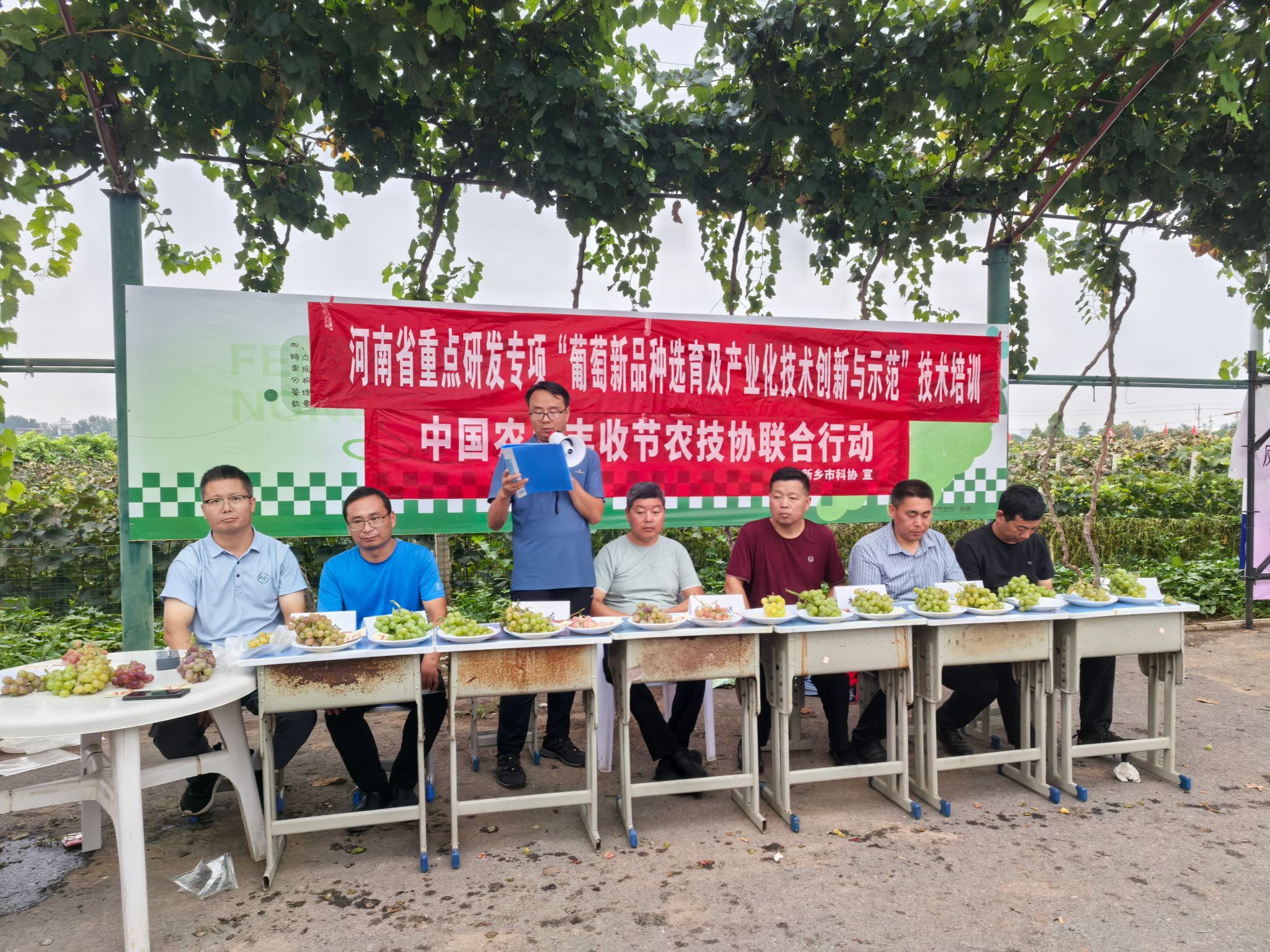 8月24日,新乡市凤泉区南张门葡萄首届“葡萄王争霸赛”开赛。我院“葡萄新品种选育及产业化技术创新与示范”河南省重点研发专项课题组专家团队受邀全程参与,以专业指导、技术支持与知识科普为核心,推动高校科研力量对接地方产业需求,成为活动中的“科技担当”。