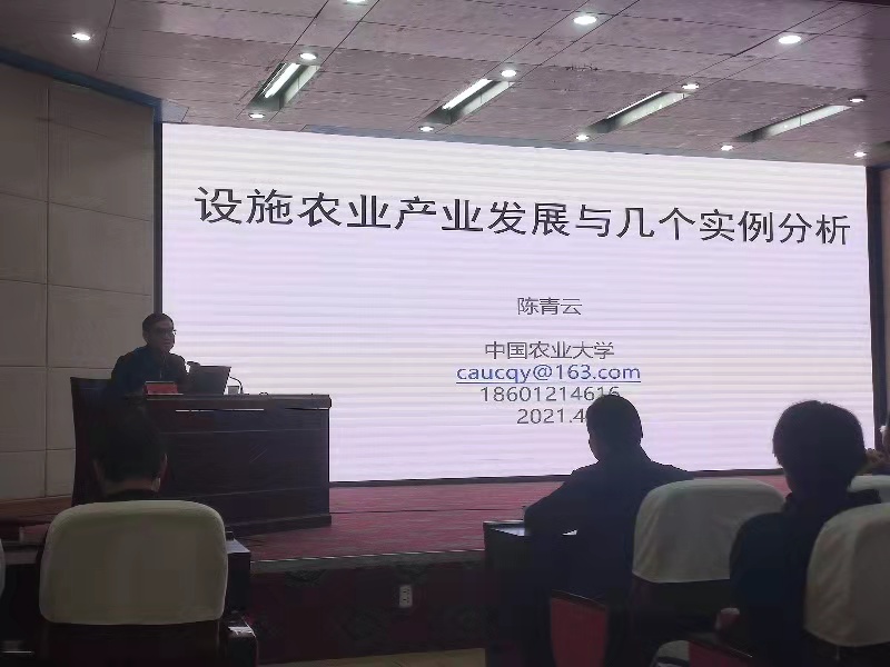 陈青云教授做了题目为“设施农业产业发展与几个实例分析”的学术报告,详细介绍了国内外设施农业产业发展概况,并结合自身科研与实践经验介绍了几个相关设施案例。