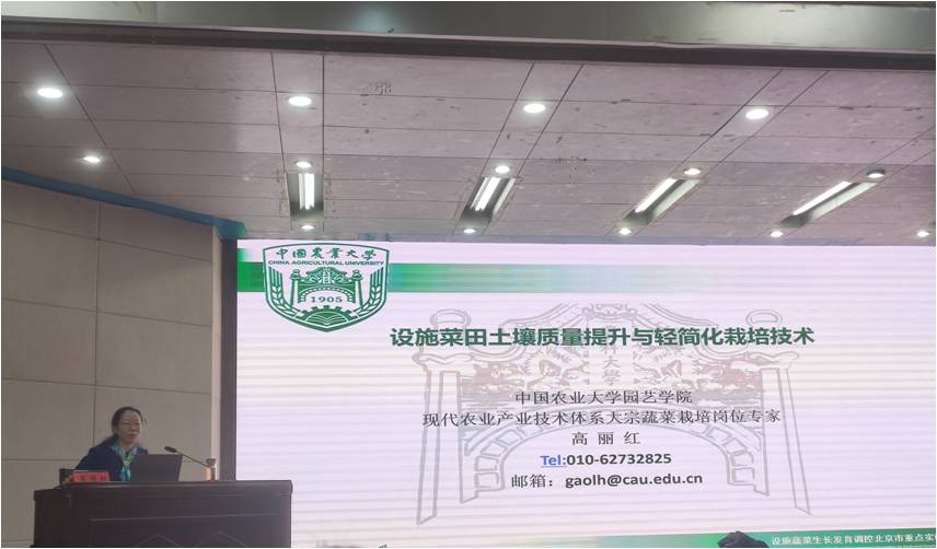 高丽红教授做了题目为“设施菜田土壤质量提升与轻简化生产技术”的学术报告。详细介绍了设施菜田土壤质量提升与轻简化生产技术概况,并结合自身科研与实践经验详细介绍了设施果类蔬菜农艺节水技术与相关机理研究;设施菜田土壤健康保持与退化土壤生物修复技术与相关机理研究等。