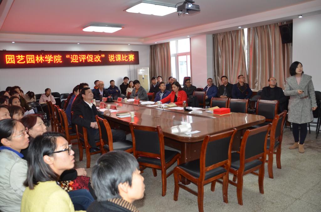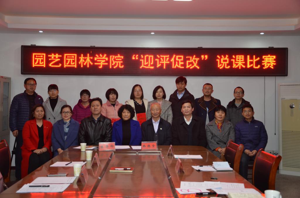 11月22日下午,园艺园林学院在院会议室举办了2018-2019学年第一学期“迎评促改”说课比赛决赛,特邀校级督导专家韩德全教授、陈翠玲教授、动物科技学院副院长陈金山教授、院级督导专家王少平教授及在学校青年教师讲课比赛中获过奖的服装学院刘淑丽老师、园艺园林学院王建伟老师作为评委,30多位教师观摩参与了此次比赛。
