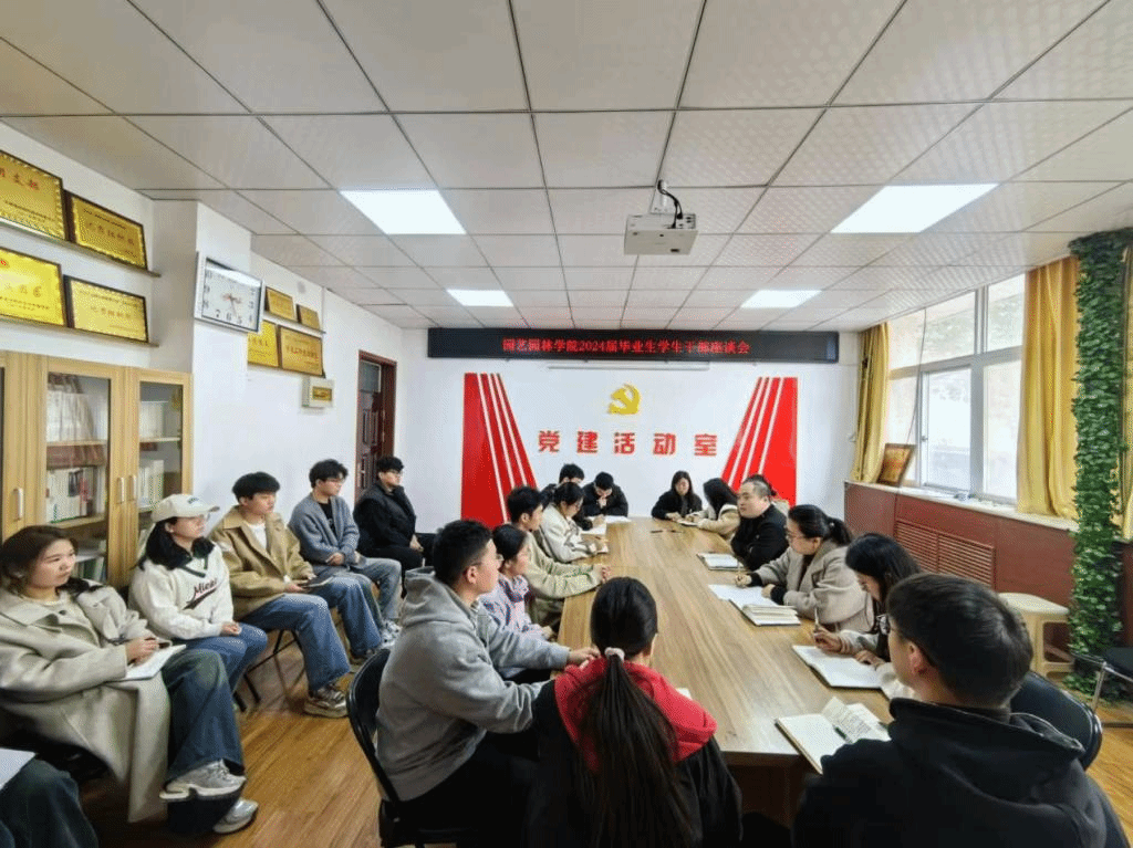 为做好2024届毕业生就业创业指导服务工作,推进我院毕业生就业创业工作的有序开展,3月26日,园艺园林学院在B106召开2024届毕业生学生干部座谈会。学院党委副书记王占魁,2024届毕业生辅导员刘璐及2024届毕业生学生干部代表参加座谈会。