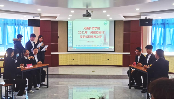 为积极宣传党和国家的学生资助政策与成效,充分展示学生在国家资助政策帮助下明德立信、自立自强、拼搏向上的青春风采,12月1日,2021年河南科技学院“诚信校园行”学生资助知识大赛决赛在实验楼A段三楼会议室成功举办。本次比赛由学生处主办,资源与环境学院承办。