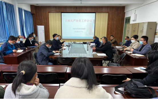 3月17日下午,资源与环境学院在实验楼E307召开全面从严治党工作会议。学院全体科级及以上干部、支部书记、支部委员出席会议,其余教师在线上参与会议,会议由院党委书记高扬帆主持。