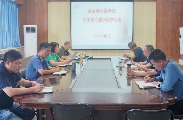 9月5日下午,资源与环境学院在实验楼E307会议室召开党委理论学习中心组专题学习会。资源与环境学院领导班子全体成员参加会议,会议由院党委书记高扬帆主持。