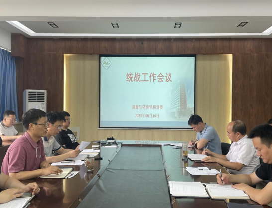 6月16日下午,资源与环境学院在实验楼E307会议室召开统战工作会议。院科级以上干部、教研室主任、实验室主任、党支部书记参加了会议,会议由院党委书记王鲁伟主持。