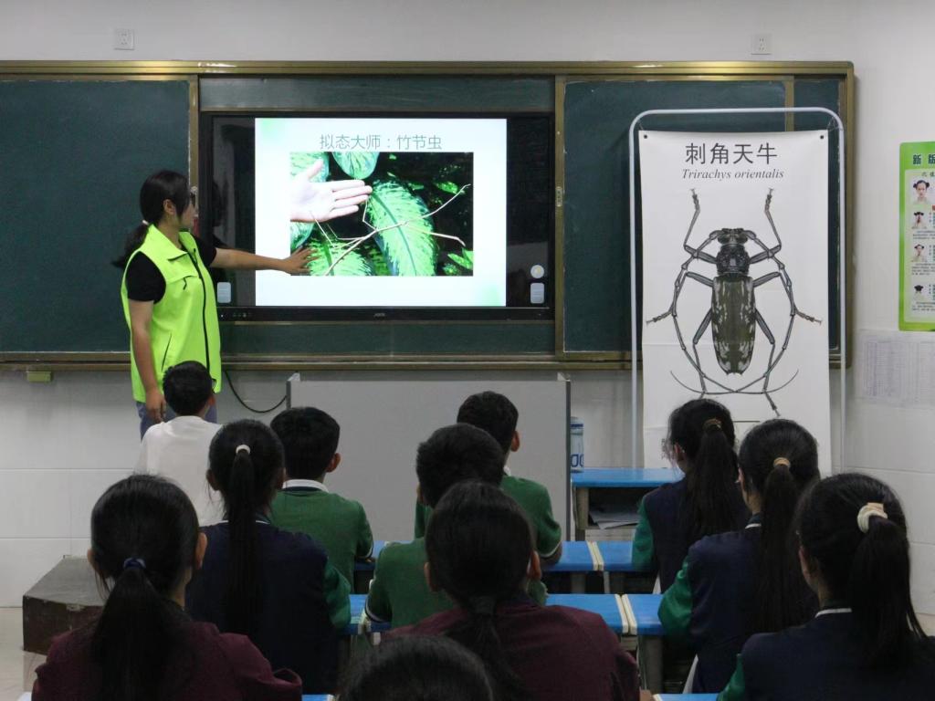 同时,资源与环境学院团委书记陈冬梅带领志愿者们,为明昌学校的200余名中小学生们带来了一场生动有趣的昆虫科普活动。此次科普活动由第四批国家样板党支部培育单位河南科技学院资源与环境学院学生第一党支部,联合学院“生生不息”志愿服务宣讲团共同开展。旨在发挥学生党员模范带头作用的同时,将人与自然和谐共处的观念传播出去,用实际行动践行“绿水青山就是金山银山”的生态环保理念。志愿者们以饱满的热情和专业的知识,通过生动的讲解、高清的昆虫绘图以及标本展示,让在场的中小学生领略了昆虫的多样性,并深入了解了昆虫的生态功能及其在自然界中的重要地位。在互动环节中,有奖问答和趣味游戏更是激发了学生们对昆虫世界的好奇心与兴趣。活动还特别为参与者准备了价值一千多元的《读诗赏虫》精美图书,旨在通过寓教于乐的方式,让学生们更加深入地了解昆虫知识,培养对自然的热爱和敬畏之心。