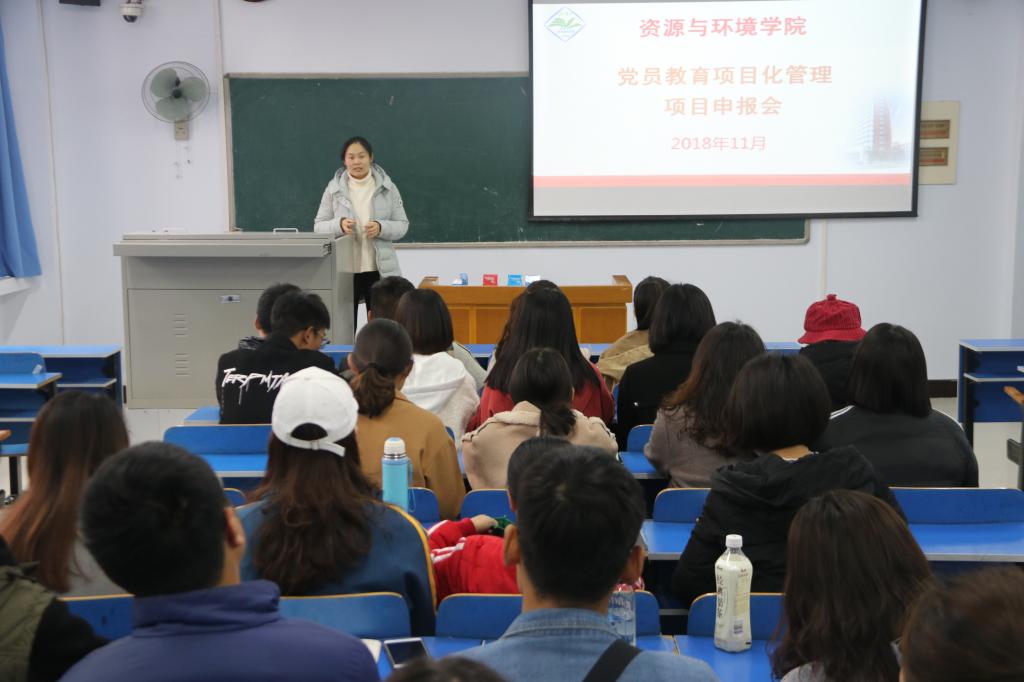 为了强化党员教育管理的针对性和有效性,充分发挥学生党员的模范带头作用,资源与环境学院于11月23日在6201教室举行了党员教育项目化管理论证会,辅导员姜丽娟、各项目负责人、部分党员代表参加了项目论证会。