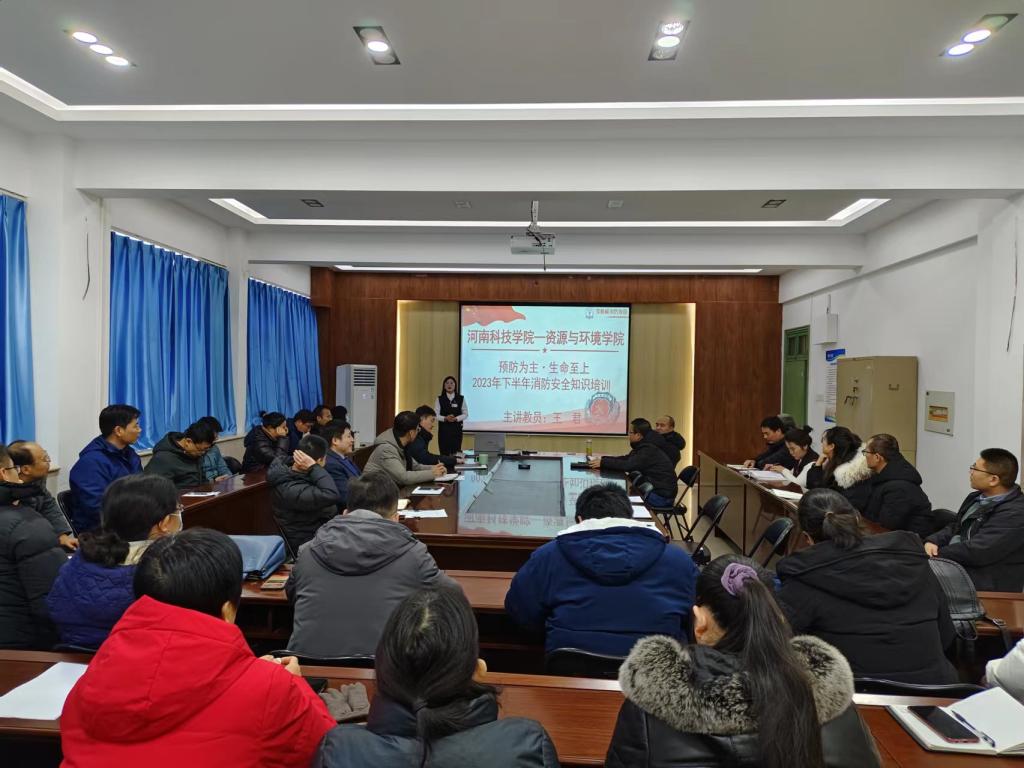 为进一步提高教职工消防安全意识,全面普及消防安全知识,做好消防安全隐患预防工作,12月21日下午,资源与环境学院在实验楼E307会议室召开2023年下半年消防安全知识培训会议,学院全体教师参加会议。会议邀请到新乡市消防协会王君教员开展以“预防为主,生命至上”为主题的专题消防安全培训。