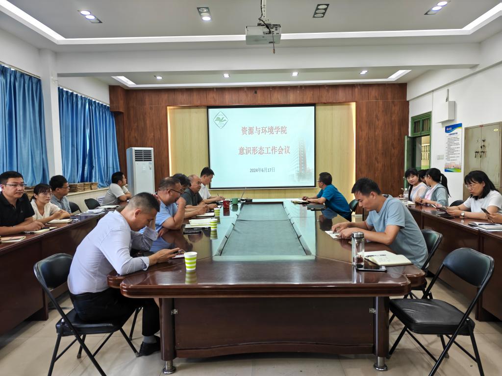 6月17日上午,资源与环境学院在实验楼E307会议室召开意识形态工作会议。院科级以上干部、教研室主任、实验室主任、党支部书记参加了会议,会议由院党委书记王鲁伟主持。