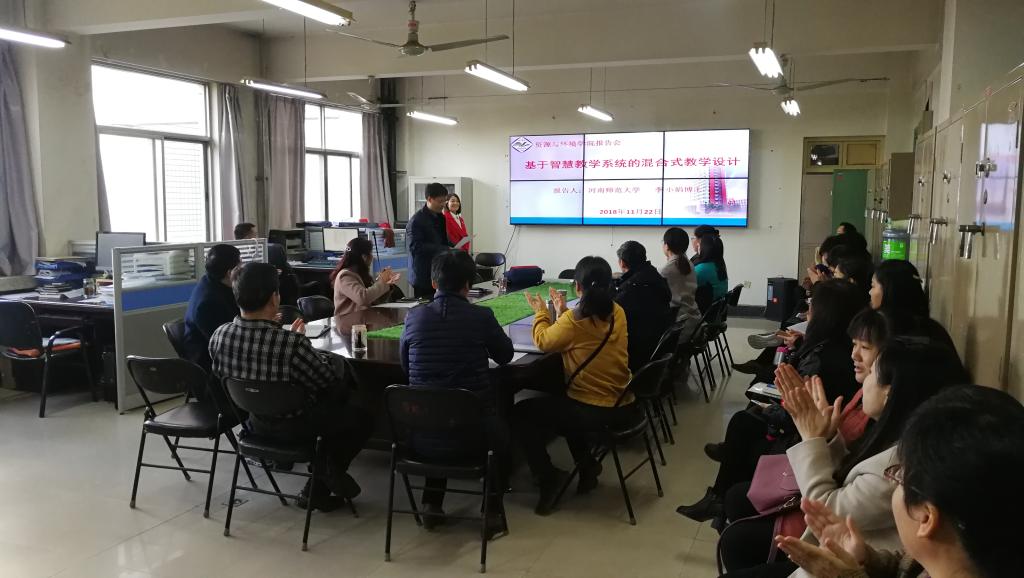 为了持续深化教育教学改革,进一步提升教师的教学水平,11月22日下午,我院邀请河南师范大学李小娟博士在实验楼E307做了关于“基于智慧教学系统的混合式教学设计”的专题报告。资源与环境学院党政领导及全院教师参加了报告会。报告会由王洪亮院长主持。