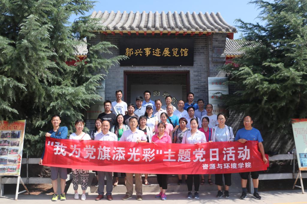 开展主题党日活动。为隆重庆祝中国共产党成立98周年,教育引导广大党员强化“四个意识”,坚定“四个自信”,7月7日,资源与环境学院党委组织全体党员奔赴辉县郭兴事迹展览馆与河南科技学院辉县校区开展主题党日活动。