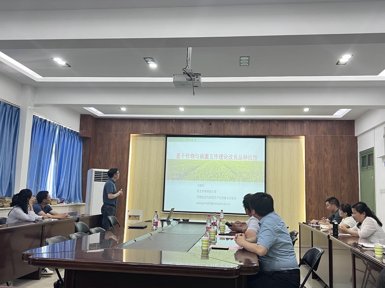 6月15日,作物抗逆与高效生产全国重点实验室主任、国家杰出青年科学基金获得者、西北农林科技大学二级教授王晓杰应邀到我院进行学术交流。报告会由院长刘润强主持,小麦工程技术研究中心主任陈向东、副院长王国昌、孔凡彬及相关学科教师及研究生50余人参加会议。