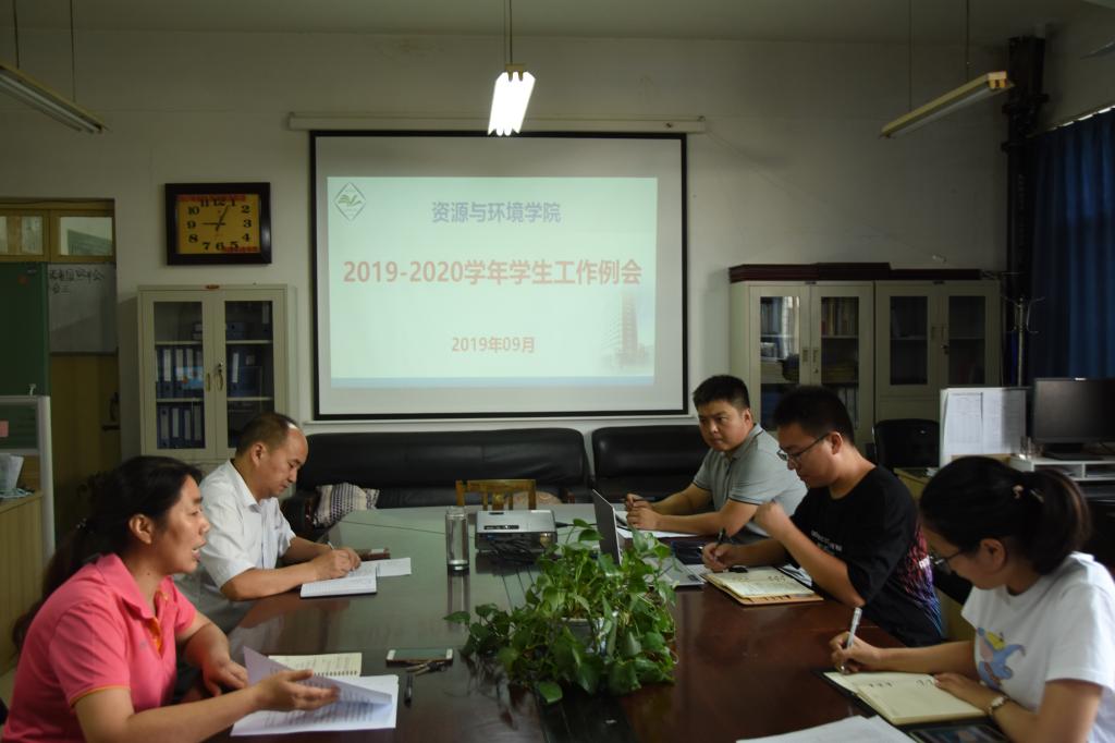 9月1日上午,资源与环境学院在实验楼E301召开新学期学生工作例会,党委书记高扬帆、副书记刘军锋、全体辅导员及主要学生干部参加了本次会议。
