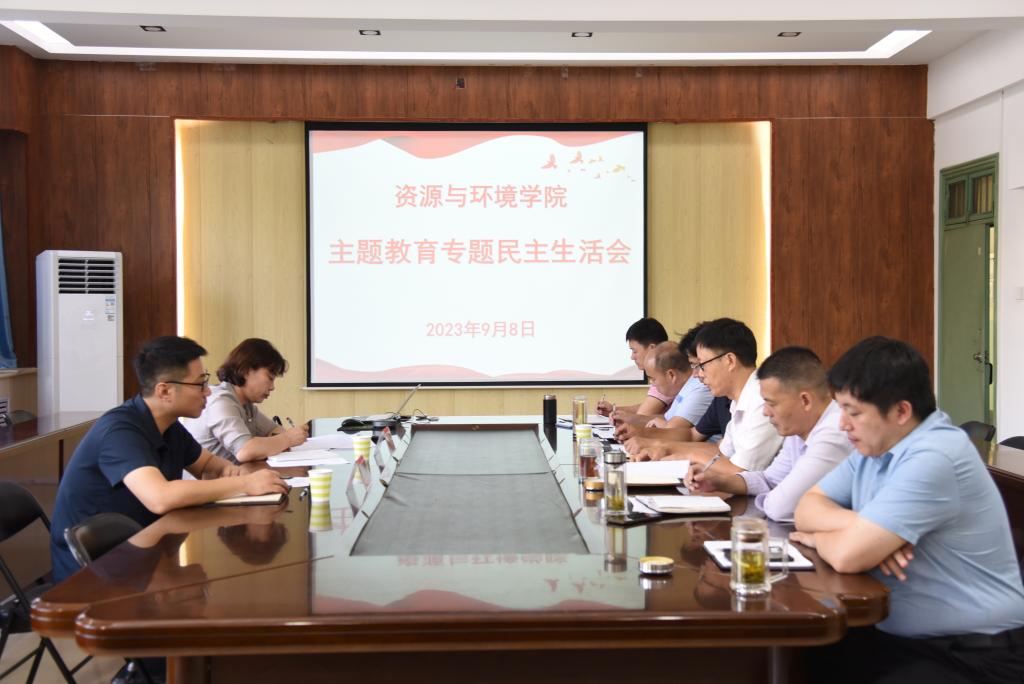 9月8日,资源与环境学院领导班子学习贯彻习近平新时代中国特色社会主义思想主题教育专题民主生活会在实验楼E307会议室召开,会议由院党委书记王鲁伟主持。学校主题教育专题民主生活会第四督导组到会指导,督导组成员虎燕子作点评讲话。