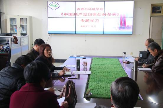 11月8日下午,资源与环境学院在实验楼3楼E307会议室开展学习贯彻《中国共产党纪律处分条例》以案促改警示教育专题学习会,全体党员参加会议。资源与环境学院党委书记高扬帆领学并主持会议。