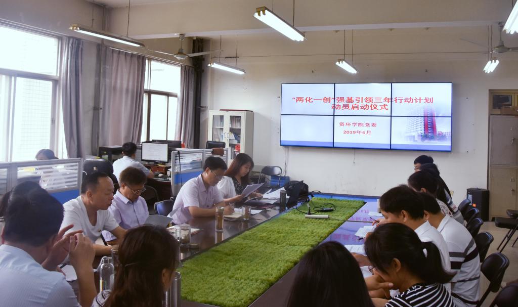 6月27日下午,资源与环境学院在实验楼E307会议室举行“两化一创”强基引领三年行动计划动员启动仪式。会议由院党委书记高扬帆主持,学院全体教师党员参加会议。