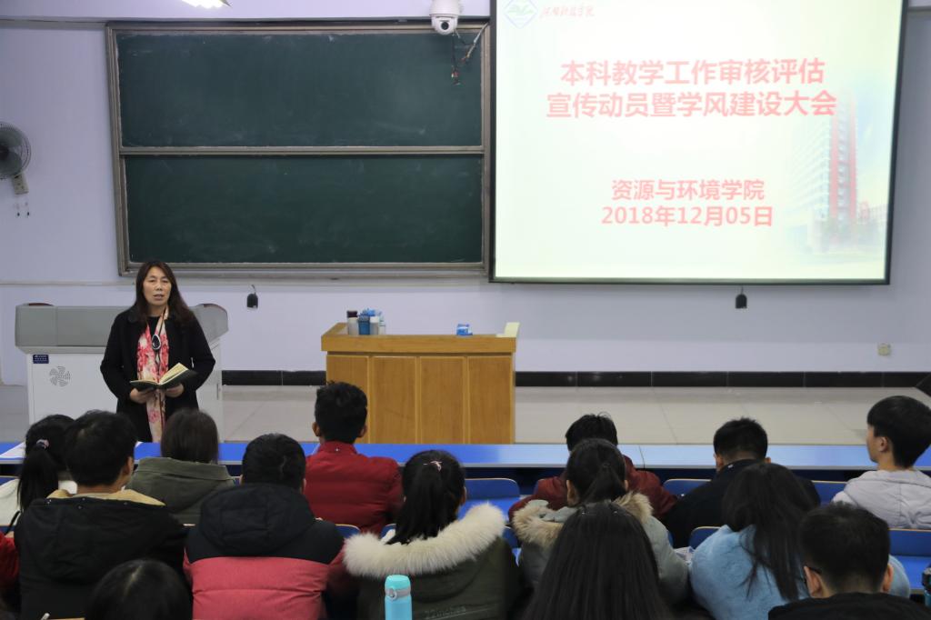 为进一步深入理解审核评估的具体内涵,全力以赴做好本科教学审核评估工作。12月05日晚上,资源与环境学院在三合二教室,组织开展了2018年度本科教学工作审核评估宣传动员暨学风建设大会。资源与环境学院党委书记高扬帆、副院长王国昌、辅导员侯超逸出席会议,17、18级全体团支委参加会议。