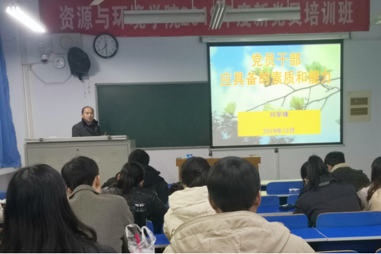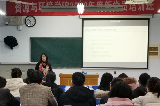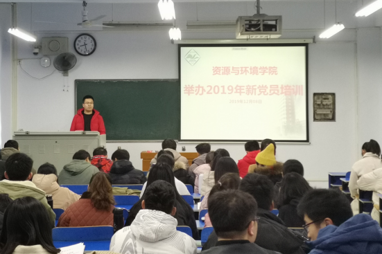 为进一步增强新党员的党员意识和党性修养,资源与环境学院党委根据学校安排,于12月8号至20号认真开展了2019年度新党员培训工作。为了提升培训效果,党员培训宣讲团,成员有党委书记高扬帆、副书记刘军锋、团委辅导员及两名研究生助理辅导员,60余名新党员全程参与培训学习。