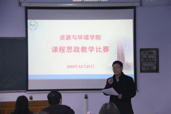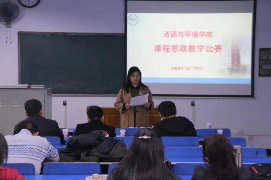 为进一步落实立德树人根本任务,引导和鼓励教师将思政教育融入专业课程教学,推进全员、全程、全方位育人,构建大思政格局,资源与环境学院于12月27日下午在6号教学楼205举行课程思政教学比赛。