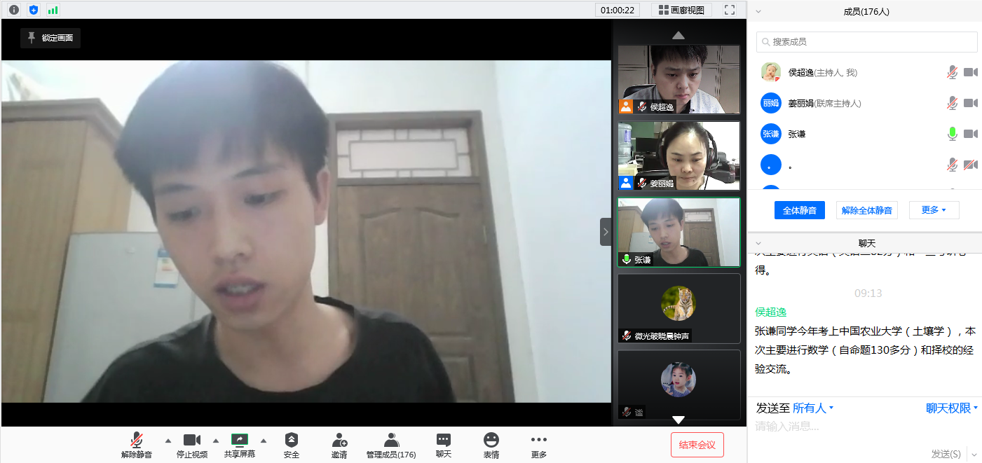 考研学生代表分享了自己的成功经验,详细地为同学们讲解了备考期间的注意事项,包括心态调整,辅导资料、复习时间安排、意向院校的专业课资料获取方式以及调剂、疫情期间如何提高在家复习效率等问题。